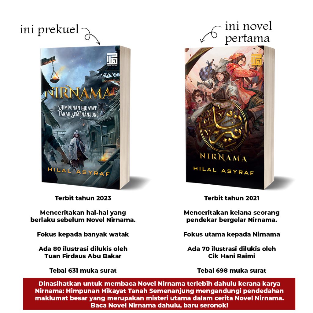 Mohon rujuk kulit novel di atas. Di sana ada sinopsis. Baca sinopsis tersebut. Bandingkan antara dua kulit novel. Anda akan dapat kepastian bahawa karya Nirnama: Himpunan Hikayat Tanah Semenanjung merupakan prekuel kepada Novel Nirnama. Dua karya yang berbeza. Bukan karya yang sama.
